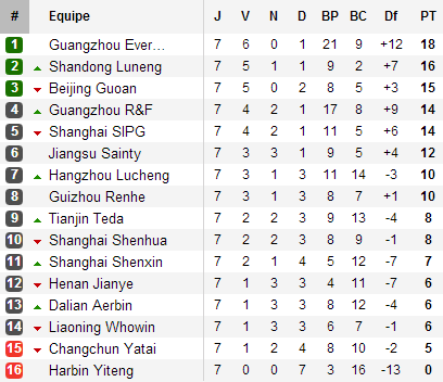 La défaite du Guoan profite donc aux Evergrande qui, à quelques heures de jouer leur peau en Champions League, ont tranquillement écarté le Shenhua/Greenland, signant ainsi leur sixième victoire en sept rencontres. Elle profite également à l’autre club de Guangzhou. Les Argenlic réalisent l’une des performances de la semaine en parvenant à renverser une situation bien mal embarquée. Menés 2-0 à la pause à Changchun, les hommes d’Eriksson, privés de leur buteur Hamdallah, sont parvenu à retourner le match en 5 minutes pour arracher un précieux succès dans les arrêts de jeu par leur brésilien Davi. Les Argenlic sont désormais au pied du podium.