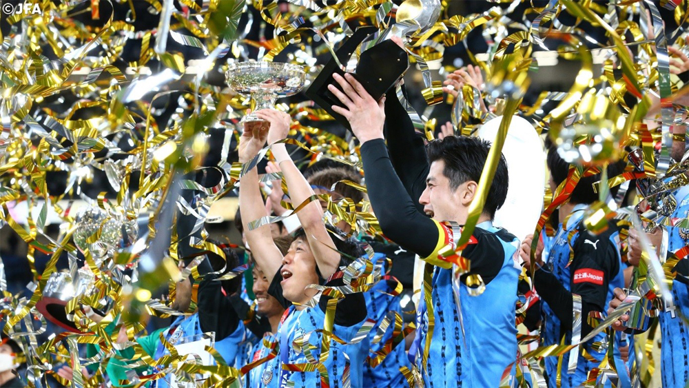 Après le titre de J1 League remporté aisément, Kawasaki Frontale a remporté ce matin la première Coupe de l’Empereur de son histoire pour réaliser le doublé Coupe – Championnat ! Une manière parfaite de dire adieu à Kengo Nakamura qui disputait là le dernier match de sa carrière et qui donc s’en va sans être entré en jeu mais en soulevant le trophée.