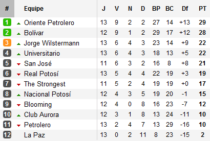 Derrière ce duo, à six points, Jorge Wilstermann a donc pris la troisième place en s’imposant devant Universitario. Cette place, qualificative pour la prochaine Sudamericana reste cependant bien précaire. Car derrière, Si Universitario compte le même nombre de points, San José et ses trois victoires consécutives n’est qu’à un point et compte deux matchs de retard. Reste The Strongest, actuel septième à cinq points du troisième mais qui compte également deux matchs de retard.