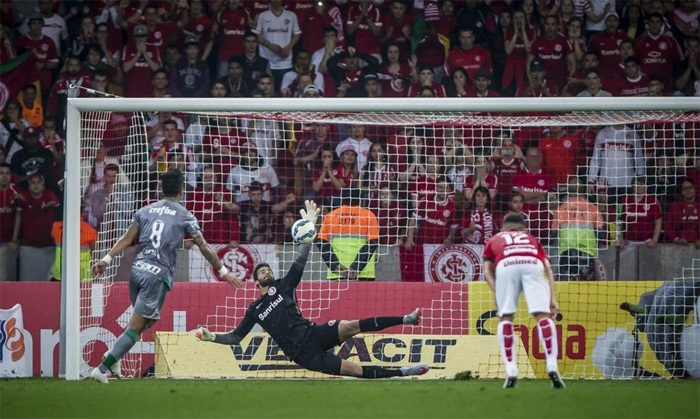 Dans le choc de ces quarts de finale, l’Internacional, privé de nombreux joueurs (Gemerson, Eduardo Sasha, Rafael Moura, D’Alessandro, Lisandro Lopez), recevait Palmeiras, qui retrouvait Dudu, suspendu pour le Brasileirão. La première mi-temps fut équilibrée et Lucas Barrios, quatre buts lors des deux derniers matchs, avait l’occasion d’ouvrir le score pour Palmeiras sur penalty. C’était sans compter sur Alisson qui repoussait la tentative de l’ancien montpelliérain. Grâce à une belle frappe d’Alex, l’Internacional rejoignait les vestiaires avec un but d’avance. En seconde période, Palmeiras était le plus entreprenant et aura été récompensé de ses efforts grâce à Rafael Marques, entré deux minutes auparavant, le vétéran égalisant d’une jolie tête. Le match se terminait sur ce score de 1-1 et sous les sifflets de Beira-Rio. La tâche se complique pour l’Inter, d’autant plus que Vitinho, suite à un troisième carton jaune consécutif, sera suspendu pour le match retour.
