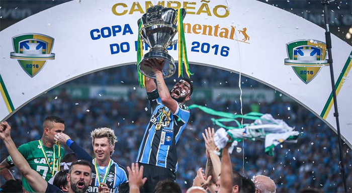 Ce lourd instant avalé, on reprend une gorgée de bière, se tape sur l'épaule et finit par y songer : Allez, peut-être qu'ils peuvent le faire quand même. Dans le stade de la capitale du Rio Grande do Sul, les gremistas sont pour leur part excités comme jamais et poussent bruyamment leurs ouailles dès le coup d'envoi. Sur le pré, ces derniers annoncent la couleur dès les premières secondes de jeu : retranchés dans leur moitié de terrain, les cages sont cadenassées et le milieu de terrain verrouillé, comme à l'aller. Logiquement, les mineiros partent donc à l'abordage, en quête du but qui ferait vaciller le solide mental gaucho. Mais Walace, Maicon et Dougals ressortent la même sauce qu'il y a deux semaines, annulant chaque offensive adverse aux abords des 30 mètres, et lançant des contre-attaques tranchantes dans le dos du Galo. Car en effet, avec son 4-3-3 qui se mue en une sorte de 2-3-4-1 (oui, oui) en phase de possession, l'Atlético s'expose plus que jamais à la vitesse dévastatrice de Ramiro et Luan. L'Atlético est volontaire mais toujours aussi brouillon, et n'arrive à rien face à ce Grêmio dont le style italien promet de belle chose pour la saison 2017. En fin de première période, Luan part, fatalement, dans le dos de la défense mineira et oblige Victor à un véritable exploit sur ce duel. La prouesse du capitaine du Galo est célébrée comme un but à Belo Horizonte. Il faut dire que le gardien de 33 ans formé chez l'adversaire du soir, est l'un des derniers représentant de la victoire en Copa Libertadores 2013. Respect.