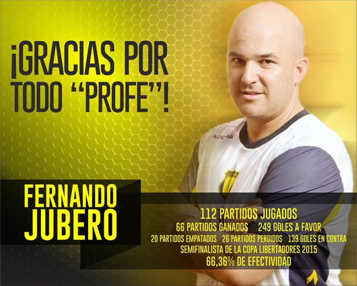Derrière, Libertad devra se contenter de la prochaine Sudamericana dans laquelle le Guma accompagnera donc Sol de América mais aussi le dernier demi-finaliste de l’épreuve, le Sportivo Luqueño qui termine son année 2015 sur une victoire face à un General Díaz qui a terminé à huit ! Reste que cette fin de saison paraguayenne marque aussi la fin d’un cycle, celui de Fernando Jubero à la tête de Guaraní. Si le Cacique a terminé son tournoi sur une défaite face à un Rubio Ñú qui ainsi se sauve en Primera Division, le départ de son génial coach espagnol va laisser un grand vide. Sous sa conduite, Guaraní est devenu une véritable machine à marquer, la seule équipe paraguayenne à proposer un football offensif cohérent depuis quatre saisons. Les chiffres sont astronomiques. Sur l’année 2015, l’Aborigen aura une fois encore terminé meilleure attaque du pays, finissant le Clausura avec 32 buts inscrits sur les 10 derniers matchs et l’année 2015 avec un chiffre de 92 buts en 44 matchs soit 19 de plus que le Cerro Porteño, deuxième meilleure attaque de l’année, le tout après la saison record à 105 buts en 2014. L’héritage du technicien espagnol est immense tant son travail au sein du club a été énorme de la formation à l’équipe première (au cours de ces quatre dernières saisons, nous n’aurons jamais cessé de rendre hommage à son travail dont une partie vous était présentée ici). Après avoir fait de Guaraní un membre du dernier carré de la dernière Libertadores. Jubero va désormais rentrer en Espagne et analyser les offres qui se présentent à lui, son retour sur un banc européen semble plus que jamais d’actualité, laissant ainsi le peuple jaune et noir et les amoureux de son Guaraní orphelins. Ne reste plus qu’à le remercier chaleureusement pour toutes ces émotions et espérer qu’il revienne un jour sur les terres sud-américaines.