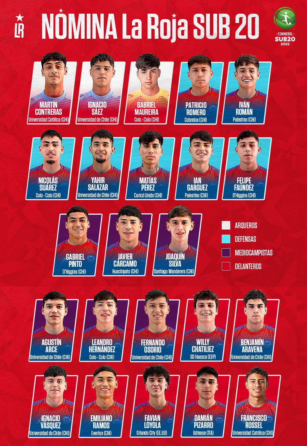 Au Chili, l’avenir a été mis entre les mains de Nicolás Córdova. L’ancien entraîneur de Palestino et des Wanderers aborde le tournoi avec la certitude d’être présent à la prochaine Coupe du Monde de la catégorie, le Chili en étant l’hôte. Il peut ainsi travailler à installer une nouvelle dynamique, les U20 n’étant que peu habitués à briller au Sudamericano depuis la génération dorée à l’exception de 2013 et ses U23 ayant totalement échoué dans la course aux JO 2024. Il pourra s’appuyer sur un facteur X nommé Damián Pizarro, parce qu’il évolue déjà en Europe, à l’Udinese, mais le pays comptera également sur des joueurs tels que Juan Francisco Rossel, déjà aperçu en championnat avec la Católica, Emiliano Ramos, petit ailier déjà très en vue à Everton ou encore Iván Román, déjà titulaire indiscutable en défense centrale avec Palestino.