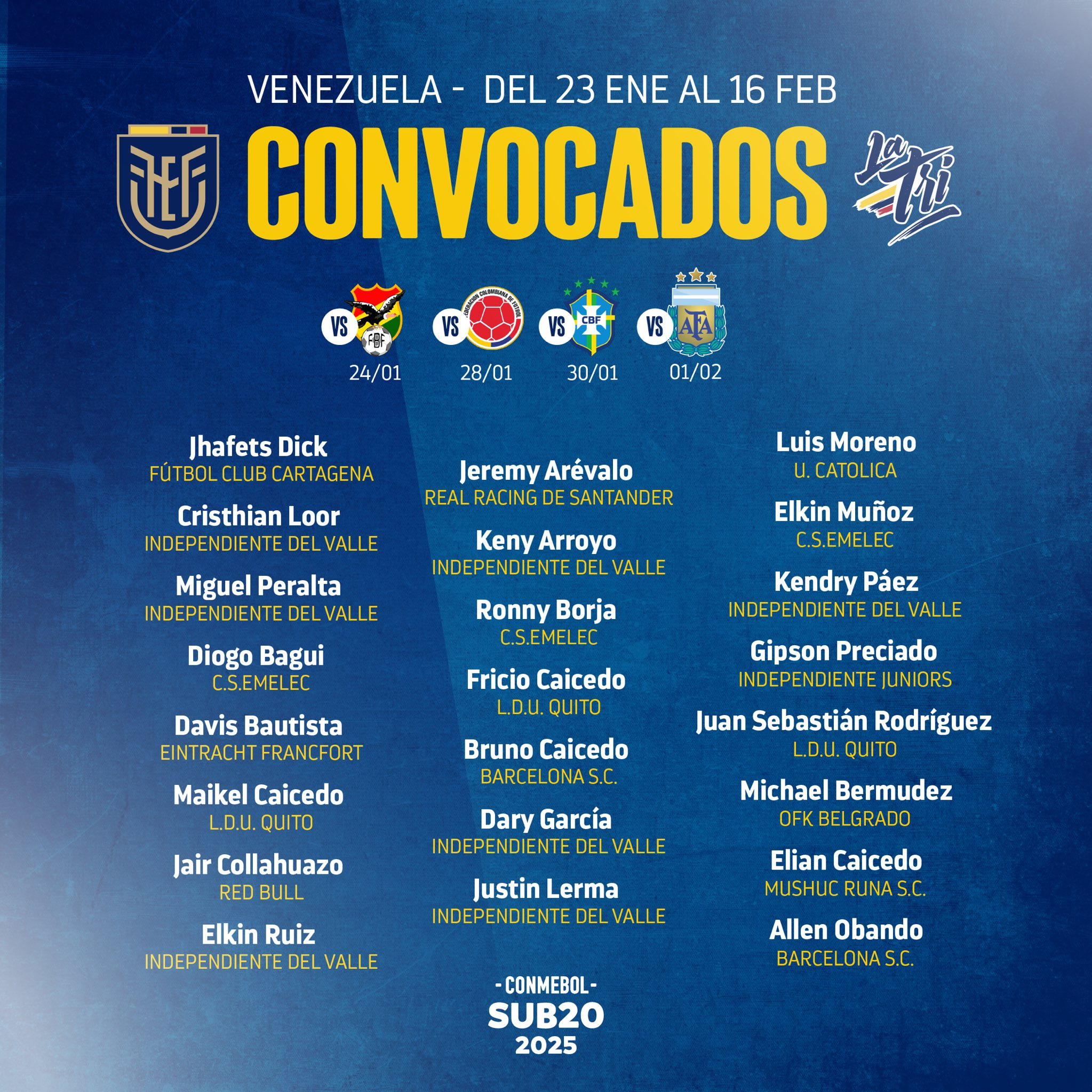 Enfin, le dernier danger du groupe se nomme Équateur. Nous n’allons pas rejouer le couplet de l’importance prise par ce pays dans le paysage footballistique sud-américain depuis quelques années tant chez les A que chez les jeunes, tant sur le plan des sélections que des clubs. Mais cela permet de rappeler que désormais, lorsque la Tri se présente à une compétition, elle fait obligatoirement partie des candidats mais surtout, nourrit de grandes ambitions. La catégorie U20 ne déroge pas à la règle après une victoire en 2019 avant un podium mondial qui suivait une seconde place en 2017. Et comme pour effacer l’échec de 2023, la version 2025 arrive au Venezuela solidement armée. Avec huit membres actuels d’Independiente del Valle, la miniTri s’arme de quelques anciens U17 huitièmes de finaliste mondiaux de la catégorie en 2023 (éliminés par le Brésil d’Estevão) déborde de talents, s’offrant le luxe de pouvoir aligner ses meilleurs espoirs. Ainsi, l’heure sera pour certains de découvrir les Justin Lerma, Keny Arroyo et autre Allen Obando dans une formation au potentiel offensif totalement dingue d’autant qu’elle y adjoint enfin Kendry Páez. S’il est un épouvantail dans ce groupe de la mort, il semble bien porter le maillot de l’Équateur.