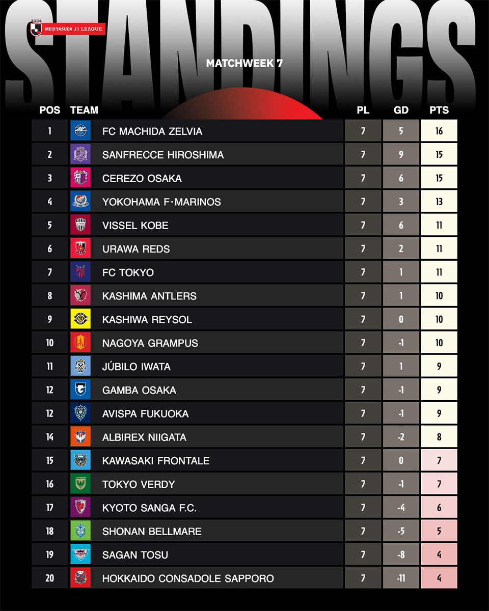 Soixante-six. C’est le nombre de tirs du Sanfrecce Hiroshima sur ses trois derniers matchs. Soit vingt-deux tirs de moyenne. Pourtant, seuls cinq buts ont été marqués, preuve du plus gros problème du club du Chūgoku : le manque d’un vrai buteur. Ce devrait normalement être le rôle de Pieros Sotiriou, mais le chypriote est en grande difficulté. Yuki Ohashi, même s’il a déjà inscrit six buts, rate lui aussi beaucoup trop. Cela avait ainsi coûté deux points contre le Gamba Osaka et empêché une fin de match sereine contre Machida. Même si contre Shonan, absolument inoffensif, cette inefficacité n’avait pas posé problème, elle laisse sceptique sur la capacité de Hiroshima à aller chercher le titre. Car tous les derniers champions du Japon étaient chirurgicaux face au but, surtout Kobe en 2023 et Yokohama F. Marinos en 2022. Hiroshima est l’équipe la plus dominatrice de ce début de saison. Tout a été construit pour que cette année soit celle du titre. Attention de ne pas tout gâcher.