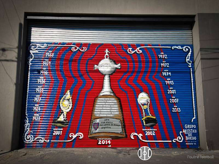En marchant dans les rues de Boedo, nous pouvons déjà apercevoir une multitude de maillot de San Lorenzo, on sent que ce rendez-vous à une saveur particulière. « Regarde River Plate, ils l'ont bien fait la semaine dernière. Nous aussi l'année dernière en battant Botafogo 3-0, alors pourquoi pas encore une fois un miracle cette année ? » nous explique Nacho, la cinquantaine. Un miracle, c'est effectivement ce que doit espérer le Ciclon ce soir. Avec 7 points au compteur, San Lorenzo est troisième de ce Groupe 2 derrière le Corinthians premier avec 13 points et São Paulo 9 points. Trois cas de figures étaient possibles avant la rencontre du soir face à la lanterne rouge du Groupe Danubio. Le premier, une victoire face aux uruguayens et une victoire du Corinthians dans le Majestuoso face à São Paulo envoyait San Lorenzo en huitième. En cas de de match nul dans le derby de São Paulo, le Ciclon devait s'imposer par au moins quatre buts d'écarts. Pour finir, si São Paulo s'imposait, San Lorenzo, le tenant du titre, serait éliminé même en cas de victoire. La tâche ne s'annonce donc pas simple et les supporters azulgranas en sont conscients. L'heure du match commence à approcher, nous nous dirigeons donc Avenida La Plata où se trouvait à l'époque le Viejo Gasometro, après un passage devant la Sede du club où de nombreux dessins appelant les hinchas à se mobiliser pour acheter leur mètre carré pour le retour à Boedo recouvrent les murs, nous arrivons dans le quartier très difficile de Bajo Flores pour rejoindre le Nuevo Gasometro.