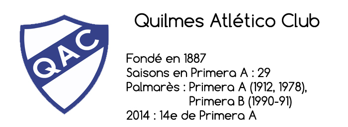 Autre équipe habituée à souffrir en Primera A ces dernières années, Quilmes a traversé le dernier tournoi dans un relatif anonymat et donne les clés à Julio César Falcioni, de retour au pays après une expérience catastrophique à la Católica. Le Cervecero, l’un des plus anciens clubs du pays et champion surprise en 1978 (voir De la gloire à l'oubli : José Yudica), reste en difficulté sur le plan économique mais parvient à rapatrier Claudio Bieler et Diego Buonanotte, et attirer Mariano Uglessich, Fabián Assman, Gustavo Noguera, Martín Pérez Guedes, Rodrigo Gómez et Adrian Calello.