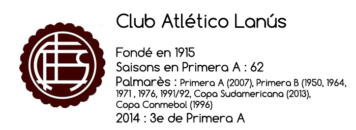 Depuis l’arrivée des frères Barros Schelotto, Lanús est devenu l’une des valeurs sûres de la Primera Division, un habituel candidat au titre. Si le Granate perd trois éléments clés durant l’été argentin avec Agustín Marchesín, Diego González, Leandro Somoza et Silvio Romero, les arrivées de Matías Fritzler, Sebastián Leto, Fernando Monetti, Diego Barisone et du talentueux Facundo Melivilo tendent à prouver que le Granate sera encore l’un des candidats au titre argentin.