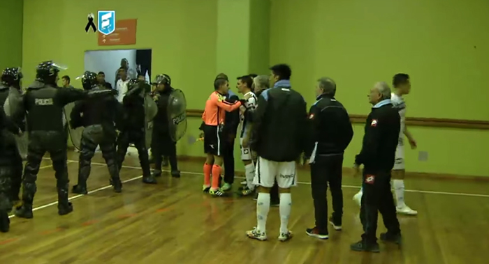 A Mendoza, Belgrano pouvait ainsi profiter de la défaite de Boca pour prendre seul les commandes du tournoi. Encore fallait-il s’imposer face à Godoy Cruz. Mais les hommes de Zielinsky en furent incapables. Face à un Tomba moins spectaculaire que lors du dernier tournoi mais bien ancré en milieu de tableau, les Piratas n’ont pas montré grand-chose laissant entrevoir une victoire, dominés en première période, peu inspirés en seconde avant de totalement craquer en fin de partie. Une première fois après un duel gagné par Ayovi qui filait au but et voit Renzo Savaria lui chiper le ballon pour le propulser dans ses propres buts – ce sera le but de la victoire pour Godoy – une deuxième fois lorsque Jerry Bengtson pétait une durite en donnant un coup de boule à Zuqui, une troisième dans les tribunes et après le coup de sifflet final pour le moment de honte du week-end argentin. Présents malgré l’interdiction toujours en cours de déplacement des visiteurs, une cinq centaine d’hinchas Piratas ont décidé d’envahir la Platea entraînant confusion et jets de chaises. Pendant ce temps, les deux équipes en venaient aux mains lors du retour aux vestiaires, l’affaire se terminant avec l’intervention mouvementée de la police mendozina, accusée aujourd’hui par l’encadrement de Belgrano d’avoir fait usage de gaz pimenté, le même qui avait défrayé la chronique lors du Superclásico (voir Ils ont tenté de nous voler le Superclásico). Alors que l’Argentine est de nouveau endeuillée par le décès de Cristian Gomez, atteint d’une crise cardiaque en plein match de Primera B entre Boca Unidos et l’Atlético Parana, ces nouveaux débordements viennent une nouvelle fois draper le football argentin du voile de la honte.