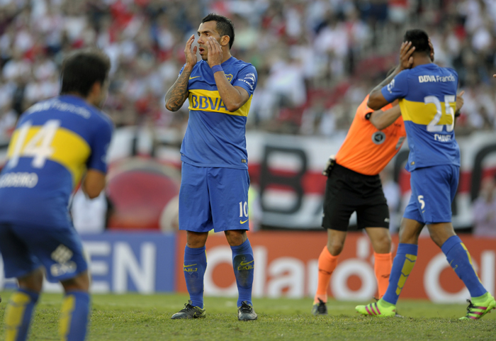 Pour cela, River devait se défaire de son meilleur ennemi Boca pour un Superclásico qui s’annonçait une fois encore bouillant. Bouillant car en nommant Guillermo Barros Schelotto à quelques jours du match et après une sortie en Libertadores d’une indigence rare, Boca était aussi attendu au coin du bois au Monumental où tout le peuple rouge et blanc espérait voir les siens lui donner la leçon. De leçon, il n’y en aura pas eu. Pourtant River a essayé, se montrant comme à son habitude, maître du jeu, maître du ballon, les hommes de Gallardo n’ont cessé d’envoyer des vagues se briser sur la défense Xeneizes, appuyant le plus souvent sur les ailes et abusant de centres qui ne trouvaient ni Alario, ni Mora. Face à River, Boca était venu en costume de guerrier, tâchant de défendre bec et ongle une égalité à zéro et pourquoi espérer quelques contres. Les hommes du Mellizo en auront bien quelques-uns, notamment en début de seconde période lorsque River paraissait flancher quelque peu mais finalement, l’incapacité de Boca à produire du jeu lui portait préjudice et les Xeneizes allaient se contenter d’un bon point pris chez le rival éternel qui permet de laisser celui-ci dans le ventre mou de sa zone. « S’il n’y avait pas de souci de jeu, je ne serais pas arrivé sur le banc » dira Barros Schelotto en fin de rencontre, Boca allait se faire ensuite bouger par ses hinchas mais se contente de ce point qui ne lui permet cependant pas non plus d’avancer.