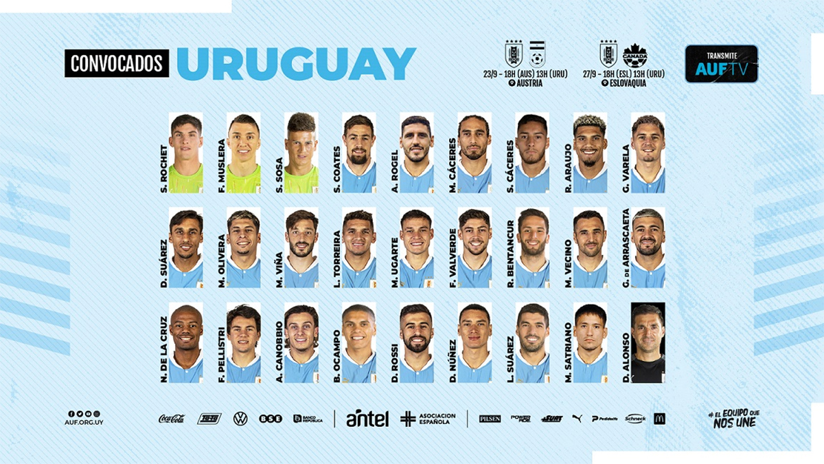 Les nouveautés se situent en défense ou en attaque en l’absence des référents habituels. Derrière, Sebastián Cáceres fait sa première apparition chez les A, lui qui joue au Mexique depuis son départ de Liverpool. Il est accompagné d’Agustín Rogel, qui après un échec à Toulouse, s’est imposé en Argentine à Estudiantes et est donc revenu tenter sa chance en Europe cet été du côté du Hertha. Sur le côté, Guillermo Varela, qui avait disparu après la Coupe du Monde en Russie, fait son retour en sélection au bon moment, lui qui évolue désormais avec Giorgian de Arrascaeta au Flamengo. Devant, l’ancien Brestois Martin Satriano fait son apparition dans le groupe, au côté de Brian Ocampo.