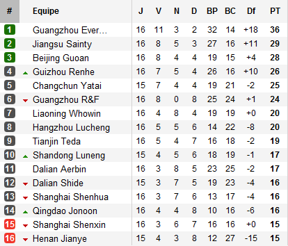 Alors que Guangzhou survole toujours autant la Chinese Super League, s’il est une certitude au soir de la 16e journée c’est que celle-ci n’aura pas fait avancer les choses.
