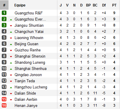 Notons également le carton de Jiangsu, nouveau troisième, devant Dalian Shide avec notamment un doublé du roumain Cristian Dănălache et la belle victoire de Beijing devant Tianjin avec un but signé de l’ancien joueur des Roar, Reinaldo. Enfin, Henan s’impose devant Guizhou avec un doublé du zambien Chris Katongo et décroche ainsi son premier succès de la saison, revenant ainsi sur Dalian Aerbin, dernière équipe à ne pas encore avoir connu la victoire.