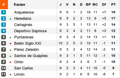 Au classement, et on ne retiendra que cela, Herediano revient à deux longueurs de la LDA avec dans sa roue, Cartaginès, Saprissa et Putarenas, tous victorieux cette semaine.