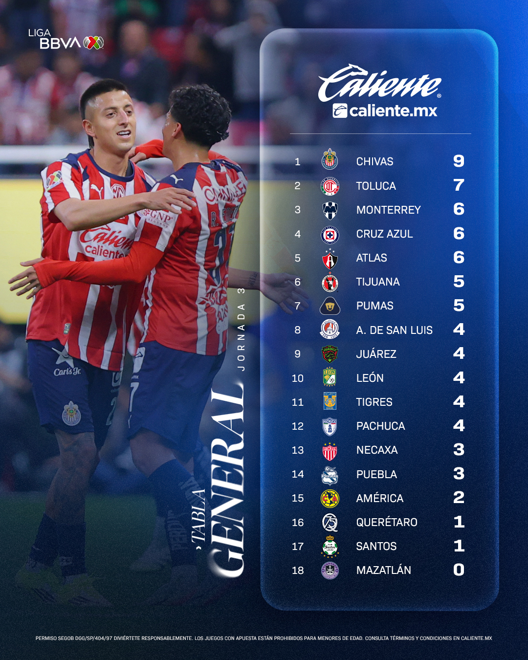 Après trois journées, si Toluca a déjà montré les crocs, notamment avec la victoire au Géant d’Acier face aux Rayados, le leader se nomme Chivas. Le Rebaño est la seule formation à faire de sans-faute et surtout montre un contenu plus que convaincant. Quatre équipes seulement sont encore invaincues après trois journées, montrant la densité de la Liga MX : Chivas et Toluca donc, mais aussi les Pumas, auteurs d’un sacré coup dans le duel des universitaires en s’imposant au Volcán, et Tijuana, qui présente le même bilan que les Pumas (deux nuls, une victoire) et ont accroché l’América lors de la première journée. Des Águilas déjà dans le dur avec aucun but inscrit en trois journées et de fait, aucune victoire. Une difficulté au lancement que les Rayados ont connu, surpris chez eux en ouverture, avant de se réveiller en s’imposant sur le terrain des Rayos de Necaxa avant d’atomiser Mazatlán
