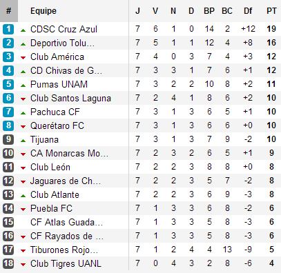 Derrière ce duo, América craque encore. Tombé la semaine passée, les Águilas chutent de nouveau cette semaine face à Morelia. Les Monarcas remportent leur premier succès sous les ordres d’Eduardo de la Torre et reviennent ainsi à trois points de la Liguilla. Bilan, derrière América, la liste des prétendants à la Liguilla s’allonge.