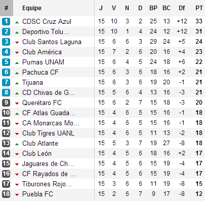 Le suspense demeure donc uniquement dans la bagarre pour la Liguilla. A deux matchs du terme de la phase régulière, ils sont encore huit – dont Atlante – à pouvoir y prétendre, trois points séparant ces équipes.