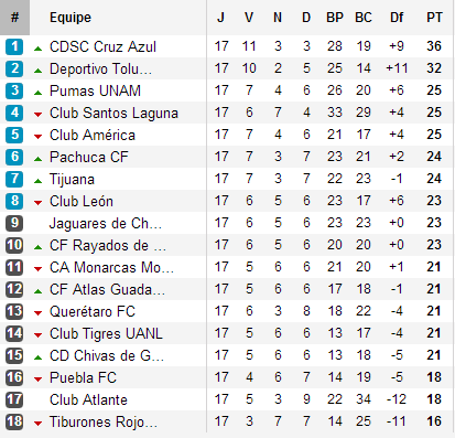 Pendant que la Máquina terminait sa phase régulière par une victoire face aux Pumas dans son Estadio Azul, que Toluca assurait le résultat nul à domicile devant América également qualifié et que Santos Laguna se contentait également du nul à Veracruz déjà éliminé, les derniers billets pour la Liguilla allaient être acquis sur le fil, le classement final ne laissant finalement que deux points d’écarts entre le troisième et le dixième.