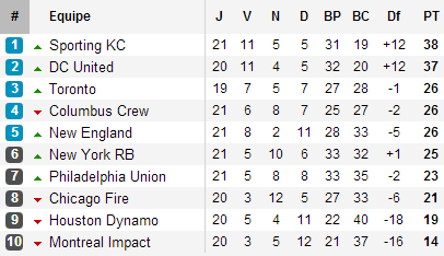 20e semaine de MLS et tandis que la rumeur Ronaldinho aux Red Bulls enfle, une certitude la conférence Est est promise au Sporting Kansas ou à DC. Comptant déjà un matelas de huit points sur Toronto, les deux leaders se sont passés le mot pour punir l’ambitieux TFC. Premier acte au Canada où, à dix contre onze, le SKC souffre énormément mais s’impose au BMO Field sur un but de Jacob Peterson à dix minutes de la fin. De quoi assommer Toronto qui se rendait à DC quatre jours plus tard. La leçon fut bien plus sévère : Eddie Johnson, Chris Rolfe et un csc d’Hagglund plus tard, Toronto rentre avec un 0-3 et se retrouve respectivement à 12 et 11 points des deux leaders (mais avec respectivement 2 et 1 match de retard).