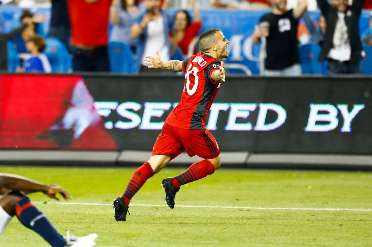 Toronto avait seulement 2 défaites jusqu’à présent, dont une face au Revolution de la Nouvelle-Angleterre. Le TFC allait vouloir venger cette défaite devant les siens au BMO Field et pouvait encore une fois compter sur le duo offensif Altidore-Giovinco avec Victor Vazquez pour les alimenter. Les Torontois étaient très motivés d’entrée de jeu puisque dès la 10e minute, Tsubasa Endoh parvenait à se défaire de la couverture du défenseur adverse, centraient vers Drew Moor qui redirigeait la balle dans le filet adverse pour permettre à Toronto de prendre les devants. Durant le reste de la 1ère mi-temps, Toronto avait plusieurs occasions de faire le break, mais le gardien Cody Cropper était là pour garder la Nouvelle-Angleterre dans la rencontre. À la 57e, Sebastian Giovinco avait un coup franc aux abords de la surface. Il le frappa comme à l’habitude, mais Lee Nguyen avait vu venir le coup et s’était mis sur la ligne pour éviter le but du 2-0 en stoppant la balle avec sa tête in extremis. En 2e moitié de 2e mi-temps, le Revolution se montrait très dangereux, mené par un Lee Nguyen qui voulait refaire le coup qu’auparavant cette saison en gagnant les 3 points face au TFC. Une des meilleures occasions pour les visiteurs était lors de la 88e, lorsque Teal Bunbury redirigeait de la tête un centre de Lee Nguyen, mais Alex Bono s’interposait et gardait les 3 points à son équipe. Dans le temps additionnel, en contre-attaque, Sebastian Giovinco s’amenait dans la surface adverse, se défaisait de Benjamin Angoua et déjouait Cody Cropper d’un tir ras de terre croisé vers le petit filet droit pour assurer la victoire à Toronto.