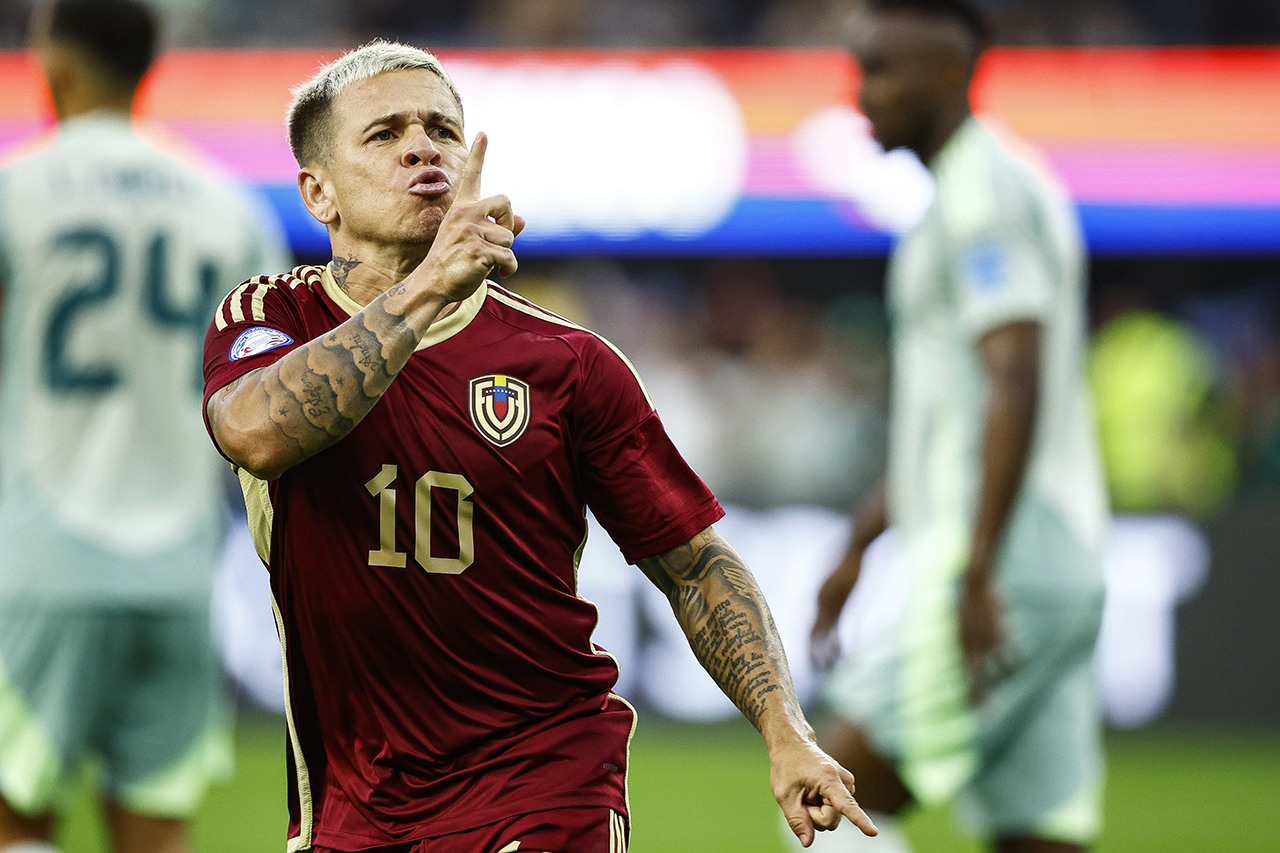 L’autre Tri du jour, le Mexique, se présentait au SoFi Stadium de Los Angeles devant une foule acquise à sa cause et avait l’occasion de prendre la tête du Groupe B en cas de victoire contre le Venezuela. Jimmy Lozano, son sélectionneur, décidait de titulariser Charly Rodríguez à la place d’Orbelín Pineda pendant que du côté vénézuélien, Fernando Batista sortait Darwin Machis et Cristian Cásseres du onze pour choisir une offre plus offensive avec le duo Jefferson Savarino - Eduard Bello. La première période était animée des deux côtés avec deux équipes joueuses. Le Tri imposait son rythme mais ne réussissait pas à concrétiser ses occasions et la précision des enchaînements s’étiolait au fur et à mesure que les minutes s’égrainaient. Le Mexique abusait de longs ballons sur Santi Gimenez pour profiter de son jeu en déviation. Cela fonctionnait sur les premières minutes de jeu, le Venezuela étant surpris par cette tactique. Le Mexique se procurait ainsi une occasion en or pour son « buteur » mais ce dernier manquait son face à face et par la même l’occasion d’ouvrir le score. Peu après, son vis-à-vis vénézuélien, Salomón Rondón était trouvé sur un long ballon, il tentait sa chance en première intention mais sa frappe heurtait le montant. L’attaquant de Pachuca est en très grande forme après avoir remporté la CONCAChampions avec son club mexicain. La mi-temps marquait un changement au niveau des joueurs avec l’entrée en jeu de Cásseres, le joueur de Toulouse, Batista voyant le manque de maîtrise au milieu des siens, et provoquait un changement de dynamique. Car alors que le Tri perdait César Montes sur blessure musculaire, remplacé à la pause par Israël Reyes, la Vinotinto dominait outrageusement le second acte. Yeferson Soteldo se signalait en premier au retour des vestiaires, il gagnait son duel avec son défenseur, mais trouvait le portier mexicain Julio González sur sa frappe du gauche. Dans la foulée, il décalait Rondón dont la frappe était déviée mais frôlait le poteau du Tri. Cette domination de début de seconde période était récompensée par un pénalty pour une faute sur Jon Aramburu de Julián Quiñones. Salomón Rondón exécutait la sentence en prenant González à contre-pied. Après le but, le match changeait de nouveau de dynamique, la Vinotinto décidant de se replier en passant à cinq derrière. Cela permettait au Mexique de se mettre en évidence, Julián Quiñones faisant passer un premier frisson sur un bon centre qui ne trouvait pas preneur. Les aficionados du Tri lançaient des « Mexico, Mexico, Mexico » pour encourager leur sélection, mais dans le jeu, le Mexique peinait par un trop grand déchet technique et l’incapacité à perforer le bloc bas vénézuélien. Tout aurait pu changer sur le penalty obtenu après intervention du VAR, Orbelín Pineda tombait sur un excellent Rafael Romo. La partie s’emballait dans le temps additionnel avec une grosse occasion mais Rafael Romo verrouillait ses cages et permettait au Venezuela de s’offrir un deuxième succès synonyme de qualification pour les quarts. Pour le Mexique, il faudra remporter la finale contre l’Équateur. .