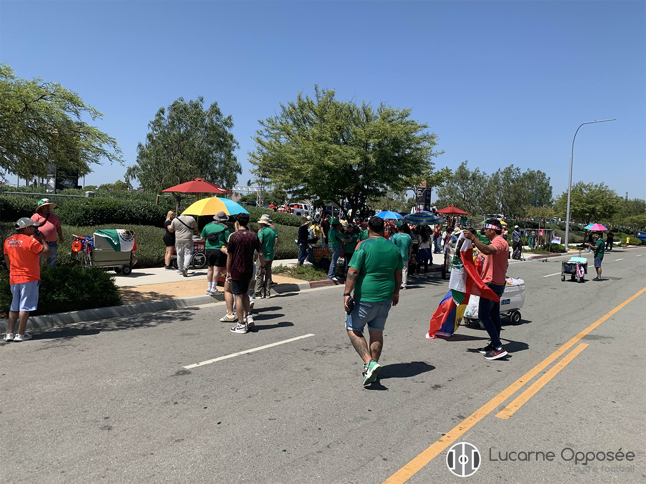 Comme expliqué dans notre premier inside de cette Copa America USA 2024, Los Angeles est une des plus importantes terres du soccer aux États-Unis. La communauté americano-mexicaine vibre pour son attachement à sa sélection le Tri. Malgré des résultats décevants qui s’enchainent et dont l’apogée fut une élimination en phase de groupes à la dernière Coupe du Monde au Qatar, une première depuis 1990 lorsque la sélection avait été privée de Mondial à cause du scandale des Cachirules (une triche à l’âge qui avait exclu le Mexique de toute compétition internationale). Il faut remonter à 1978 pour trouver trace d’une élimination au premier tour d’une Coupe du Monde à laquelle le Mexique participait et cette élimination en phases de groupes a été vécue comme un choc au pays et par sa diaspora, même si elle n’étonnait pas les spécialistes. Ajoutez à cela : le fait que le Tri n’a plus gagné contre son rival historique, les États-Unis, depuis 2019, une éternité et la victoire en Gold Cup 2023 dans ce même stade n’avait pas rassuré ; que son sélectionneur intérimaire devenu titulaire du poste, Jaime Lozano, ne bénéficie plus du soutien des aficionados de la sélection qui l’avaient surnommé Lamborjimmy ; un désamour croissant de la population avec sa sélection, l’appât du gain devenu plus fort pour la FMF que l’amour de ses supporters ayant creusé un fossé, avec une conséquence folle, le Tri a joué deux de ses trente-trois matchs amicaux sur les quatre dernières années au pays. Et voilà comment le Mexique était sous pression face à 72 773, un chiffre supérieur au Superbowl 2022 mais légèrement inférieur à la finale de Gold Cup 2023 (72 963 spectateurs). La passion était donc palpable, l’émotion se faisait sentir auprès des vendeurs de rues et des fans. Un maillot, un taco, un hot dog à la sauce mexicaine, une bière mexicaine, les Mariachis qui jouent leur musique traditionnelle. Le décor était planté pour un match déjà décisif.