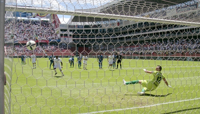 Forteresse quasi-imprenable depuis plus d’un an (seule l’Universidad Católica s’y est imposée, la LDU restant depuis sur 10 victoires et 2 résultats nuls), la Casa Blanca n’aura pas mis longtemps à montrer à Emelec qu’elle entendait bien le rester une semaine de plus. Septième minute, José Quinteros s’envolait et décochait une tête qui trompait Dreer, 12ème minute, Narciso Mina transformait un penalty accordé aux Albos pour une main de Fernando Giménez. Mené 2-0 en moins d’un quart d’heure, le Bombillo allait mettre une mi-temps pour s’en remettre. Car au retour des vestiaires, l’entrée de Mondaini changeait tout dans la construction des offensives des hommes de De Felippe. Emelec dominait largement la partie, s’exposait aux contres des blancs, et revenait dans le match sur une tête d’Achilier peu avant l’heure de jeu. La partie gagnait en tension et allait franchir un palier supplémentaire lorsqu’Herrera était fauché à l’entrée de la surface à quelques minutes du coup de sifflet final. Emelec aura beau réclamer le pénalty, il n’obtiendra rien, la LDU s’impose et revient sur sa victime du jour.