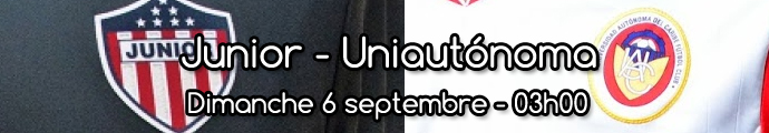 9e journée en Colombie, Junior l'équipe en forme du moment avec son buteur Vladimir Hernandez reçoit Uniautonoma qui est en grande difficulté à l'extérieur et qui encaisse trop de buts. Il ne faudra pas faire de cadeaux ce soir.