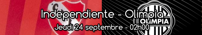 Affiche sublime! Les Argentins de Independiente qui retrouve de sa superbe avec trois victoires d'affilée dont notamment le fameux match face à Racing, reçoit le leader du championnat Paraguayen Olimpia qui écrase tout sur son passage ! Avec 3,1 buts inscrits en moyenne à chaque match Olimpia a de bonne raison de croire à l'exploit sur ce match aller à Avellaneda.