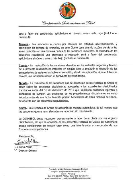 On se souvient du scandale Superclásico en Libertadores (lire Ils ont tenté de nous voler le Superclásico). La sanction qui devait alors tomber sur Boca s’annonçait exemplaire, elle l’était alors puisque Boca écopait de 4 matchs à huis-clos et une interdiction de déplacement pour ses hinchas, valable également pour 4 matchs. La semaine passée, on avait vu le président de River venir soutenir son nouvel ami Daniel Angelici dans sa campagne d’allègement de la sanction (lire Quand River soutient Boca). La bataille est gagnée.