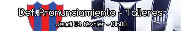 Un vent de fraîcheur s'amorce avec le premier tour de Copa Argentina. D'un côté nous avons une équipe de Fédérale avec Def. De Pronunciamiento (c'est pas gagné pour la prononciation) qui s'appuie notamment sur un bloc solide et compact, mais qui n'a pas encore débuté son championnat au contraire de son adversaire du soir. En face nous avons Talleres Cordoba (là, c'est beaucoup plus facile) qui évolue en Priméra B et possède dans son effectif un certain Guiñazú, le vétéran de 37 ans a rejoint le club cet hiver en provenance de Vasco. Autant dire que ça s'annonce bien funky comme on a l'habitude de le dire sur L.O.