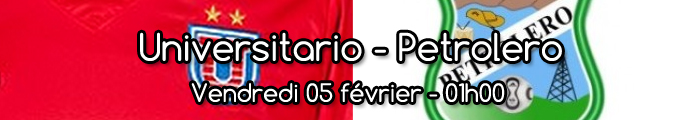 Universitario a enregistré un bon match malgré la courte défaite 1-0 le week-end dernier sur le terrain de The Strongest. Ils entament cette quatrième journée du Clausura avec confiance tant cette équipe fait bonne impression depuis le début de l'année. Petrolero n'a pas encaissé de but lors de son dernier match (victoire 2-0 face à Blooming), et, croyez-moi, c'est une réelle performance tant cette équipe à l'habitude d'en prendre habituellement. Une performance à rééditer bien sûr pour aller chercher un résultat.