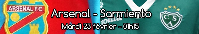 Arsenal se doit de reproduire la même partition que face à Banfield il y a dix jours. C'est pour le moment leur match référence (victoire 3-1). Après des débuts tonitruants en battant Velez (1-0) Sarmiento est vite revenu sur terre en s'inclinant logiquement à San Lorenzo, et à domicile face au Gimnasia.