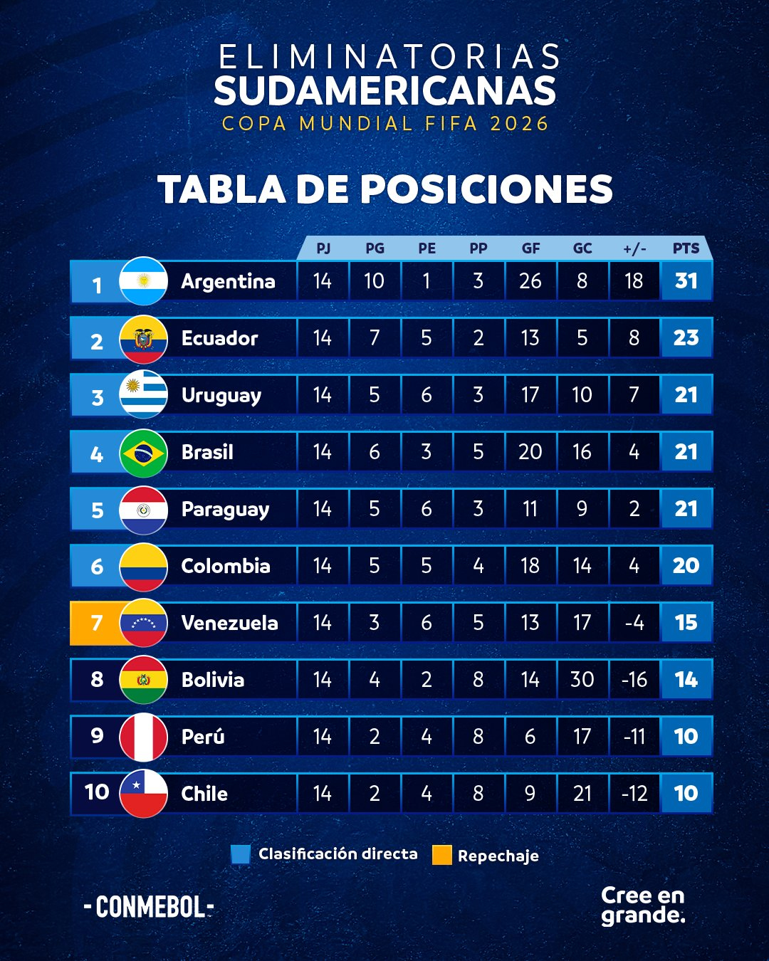 La quatorzième journée des éliminatoires sud-américains a permis d’offrir quelques certitudes en même temps qu’elle plonge bon nombre de sélections au bord de la crise de nerf.