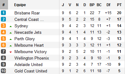 Derrière, Gold Coast n’en finit plus de couler en tombant à Perth alors que l’autre club de Melbourne, les Heart, se replacent en disposant de Wellington.