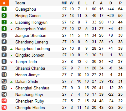 Le titre déjà joué, la Chinese Super League attend de connaître ses futurs représentants continentaux et ses relégués. A trois journées de la fin, le nombre de candidats se réduit fortement.