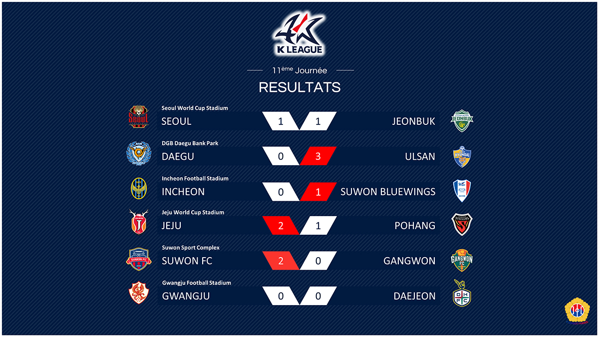 Nouveau rendez-vous avec la K League, dès la fin d’une journée, on reviendra en détail sur chacune des rencontres de celle-ci.