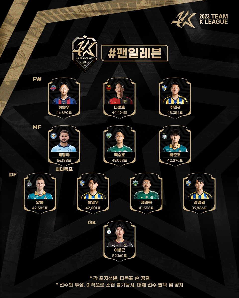 Le XI All Star pour défier l’Atlético. Les fans ont tranché. Après deux semaines de vote, le XI de départ pour représenter la K League est connu. Dans les buts, Lee Chang-geun (Daejeon) a été plébiscité et retrouvera devant lui une ligne de quatre avec Anton (Daejeon), Seol Young-woo (Ulsan), Kim Young-gwon (Ulsan) et Jeong Tae-wook (Jeonbuk). Au milieu, Cesinha (Daegu) sera accompagné de Paik Seung-ho (Jeonbuk) et de Bae Jun-ho (Daejeon). Le trio d’attaquant sera composé de Lee Seung-woo (Suwon FC), Na Sang-ho (Seoul) et Joo Min-kyu (Ulsan).