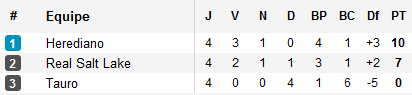 Il fallait deux buts aux Royals de Salt Lake pour parvenir à arracher leur billet pour les quarts. A domicile, face au leader Herediano, le Real Salt Lake est réduit au silence et sera le seul américain éliminé dès la phase de groupe cette saison.