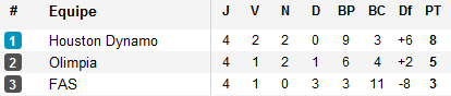 Finale du groupe entre Houston et Olimpia. Quelques jours après avoir arraché leur place en play-offs de la MLS, les Dynamos arrachent la qualification grâce à Andrew Hainault qui permet à son équipe d’obtenir le nul devant les honduriens éliminés.