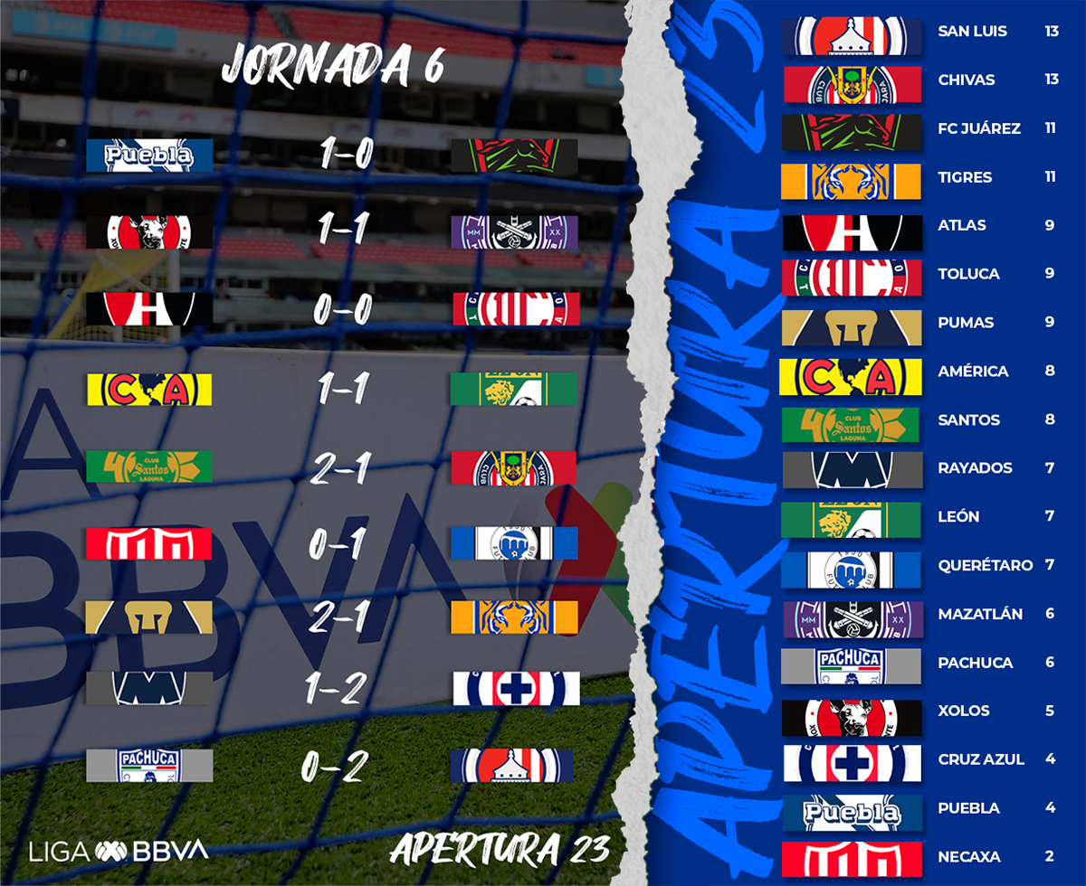 En effet, les Tuneros sont suivi de près par une autre équipe qui porte les couleurs rouge et blanche. Après une Leagues Cup décevante (élimination en poules), les Chivas ont un peu perdu le rythme (trois victoires sur les trois premières journées) avec un nul, une victoire puis une défaite en trois rencontres contre Juárez (1-1), Tijuana (1-0) et Santos Laguna (1-2). Les Rojiblancos continuent tout de même dans la lignée du précédent tournoi, où ils avaient été défaits par les Tigres en finale.