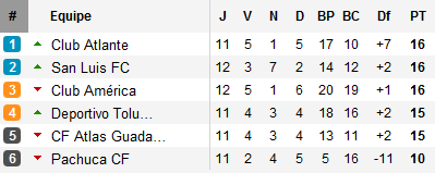 S’il est un groupe indécis, c’est le groupe 2. Atlante atomise les Jaguares (5-1) et prend les commandes, bien aidé par l’absence de résultat positif pour ses concurrents. América et Toluca s’inclinent, San Luis et Atlas se neutralisent et désormais cinq équipes qui se tiennent en un seul point.