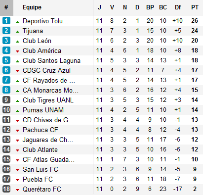 Ce résultat ne fait pas les affaires des Rayados qui glissent au classement après les victoires conjuguées d’América à San Luis (sur un but de Chucho Benitez dans les dernières secondes du match), de Santos Laguna devant Atlas et de Cruz Azul devant Atlante. Ce petit groupe de quatre équipes se tient en un point et précède (de deux points) un autre groupe de sept équipes séparées de trois points qui lutteront pour la dernière place qualificative pour la Liguilla.