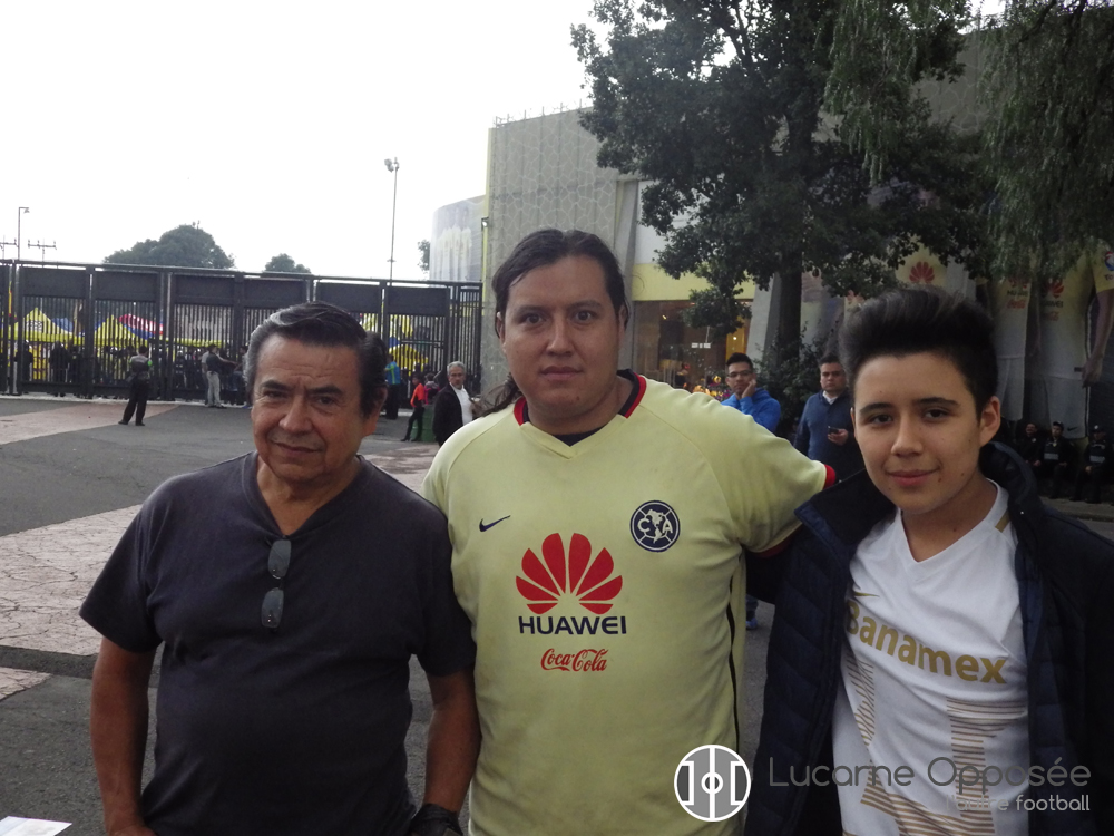 C’est le cas de ce père américanista qui amène son fils auriazul. Lui supporte l'América « pour les couleurs, les joueurs, pour la grande trajectoire du club qui en fait l'un des plus grands de l'histoire du Mexique. Au niveau international aussi, ça dégage quelque chose, » a pour idoles Alfredo Tena et Alberto Brailovsky, le premier « parce que je joue défenseur et qu’il est défenseur, » le second « parce que ça a été un grand joueur, parmi les meilleurs. » Son fils n’a pas choisi de le suivre sans pour autant que cela ne pose quelconque souci : « il faut le laisser choisir, car si je lui dis "tu dois aimer l'América", ça serait le lui imposer. Il faut le laisser choisir ce qui lui plait. » Il faudra deux questions pour voir la flamme. La première lui fait évoquer son meilleur souvenir d’américanista, « en 85 parce qu'on a gagné un championnat face au rival le plus haï de tout le Mexique, les Chivas de Guadalajara. Et ça ils ne l'ont jamais fait, ils nous ont battu sur des matchs de championnat, de Liguilla mais un championnat… Qu'ils essaient de nous gagner un championnat tiens ! », la deuxième, concerne l’arrivée de Ricardo La Vole, « Non, lui non… Non, non je ne suis pas d'accord mais bon… Enfin, on espère que tout va bien se passer. »