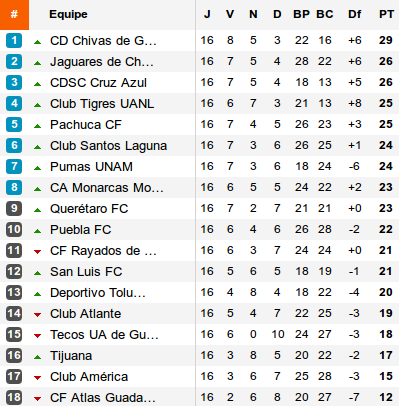 Si Chivas est d'ores et déjà assuré de disputer la Liguilla, la plus grande incertitude demeure derrière. A 90 minutes de la fin, ils sont onze à espérer.