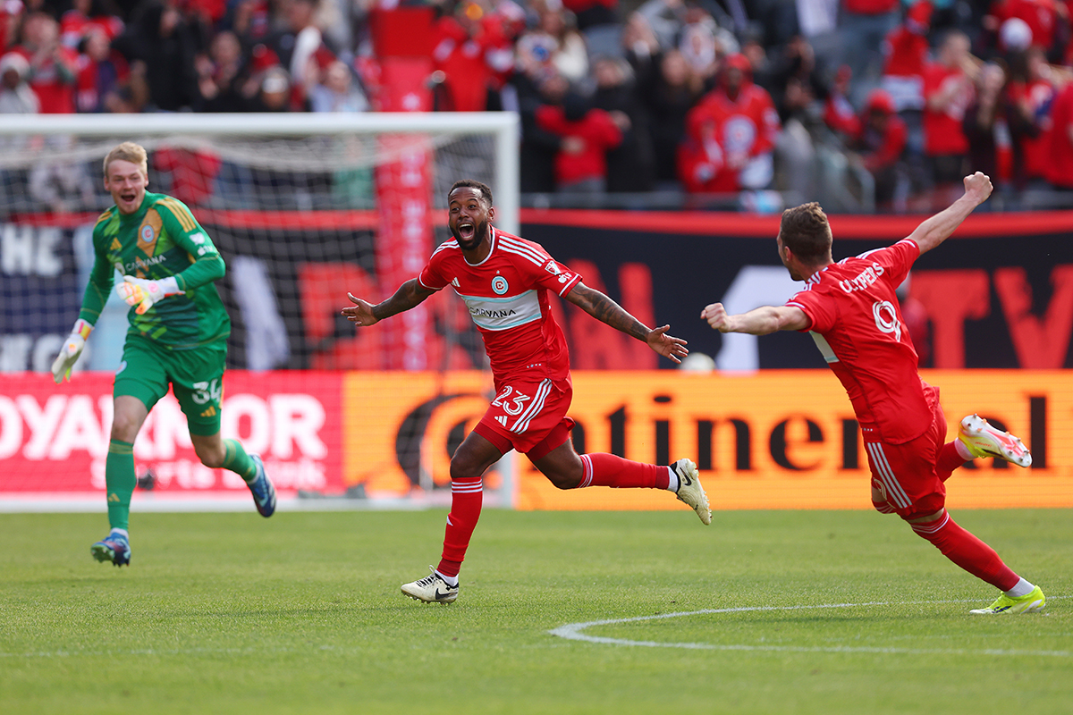 Du côté de Chicago, Montréal débutait parfaitement la partie. Les hommes de Laurent Courtois commençaient le match de manière offensive. Nous pouvions observer un pressing haut et des situations plus convaincantes du côté canadien. L’attaquant uruguayen Matías Cóccaro gagnait un « penalty VAR » où il s’empressait de mettre sa jambe avant que le défenseur donne un grand coup de pied dans le ballon pour chercher un long dégagement. Il se chargeait lui-même d’ouvrir le score à la 6e, même si son penalty fut mal exécuté, Chris Brady étant sur la trajectoire mais la main n’était pas assez ferme. Cinq minutes plus tard, sur un long ballon vers Cóccaro, l’Uruguayen protégeait son ballon du défenseur du Fire qui lui-même faisait obscuration. Deuxième penalty obtenu par Cóccaro qui décidait de le transformer, cette fois d’un contre-pied parfait. Chicago n’arrivait pas à trouver l’un de ses deux maîtres à jouer Brian Gutiérrez ou Xherdan Shaqiri jusqu’à la 18e lorsque Guti se débarrassait de son joueur à l’entrée de la surface mais son tir était trop croisé. Le Fire finissait par s’installer sans être particulièrement dangereux jusqu’à la 45+7e sur une longue ouverture de la médiane jusqu’à Haile-Selassie qui tentait sa chance au premier poteau, Sirois était surpris et Chicago se relançait avant la mi-temps. Les deux entraîneurs modifiaient leur équipe à la pause Tobias Salquist cédait sa place à Carlos Terán côté Fire, Ibrahim Sunusi et Matías Cóccaro laissaient entrer Nathan Saliba, qui faisait son retour, et Josef Martínez. La seconde période partait sur un bon rythme, les deux équipes se rendant coup pour coup. Hugo Cuypers, l’attaquant Belge du Fire s’offrait sa chance à la 49e mais était contré au dernier moment pour obtenir un corner qui ne donnait rien. Les hommes de Laurent Courtois étaient moins à leur avantage, laissaient à un Fire qui se faisait plus pressant. Guti essayait de trouver Kellyn Acosta par-dessus la défense mais ce dernier était trop court. À vingt minutes de la fin, sur une sacrée action collective venue d’une touche, Dominik Yankov et Josef Martínez combinaient dans la surface, ce dernier délivrant une passe décisive d’une talonnade au Bulgare qui n’avait plus qu’à ajuster Brady pour offrir deux buts d’avance à Montréal. De quoi tuer le match ? Pas vraiment. À la 83e, Raheem Edwards écopait d’un carton rouge pour coup de coude dans la surface et Brian Gutiérrez transformait le penalty qui s’ensuivait. Les dix dernières minutes s’annonçaient mouvementée pour Montréal à l’extérieur et en infériorité numérique. Le temps défilait puis, dans le temps additionnel, Hugo Cuypers ouvrait son compteur personnel en MLS d’une reprise à bout portant sur un corner que la défense de Montréal ne put dégager proprement. Sirois ne pouvait rien faire. La ville de Chicago faisait ensuite honneur à son surnom de « Windy City » (ville venteuse) lorsque la longue transversale de Kellyn Acosta réalisée depuis le rond central était emportée dans une bourrasque. Trop avancé, Sirois était trompé par la trajectoire et le ballon finissait sa course au fond des filets, offrant la victoire au Fire. C’est la première défaite du CF Montréal qui se déplace à l’extérieur depuis le début de ce championnat pour éviter les conditions hivernales que peut vivre Montréal pendant les mois de février et mars.