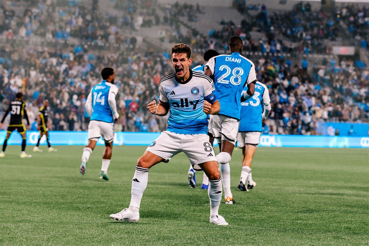Le lendemain, Charlotte recevait le Colombus Crew de Wilfried Nancy qui lui-même malade ne faisait pas le déplacement en Caroline du Nord. Malgré la fenêtre internationale et l’absence de Patrick Schulte et Aidan Morris, le Crew présentait une belle équipe avec notamment Cucho Hernández, toujours pas appelé en équipe nationale malgré ses performances de haut niveau. Le Crew, comme à son habitude, prenait le match par le bon bout et Cucho Hernández ne passait pas loin de l’ouverture du score sur un ballon enroulé du droit à l’entrée de la surface. Un peu plus tard, Diego Rossi décalé sur le côté droit tentait sa chance d’une frappe puissante mais trouvait l’extérieur du poteau de Charlotte. Puis ce sont les faits de jeux qui entraient en piste et changeaient le cours du match. Colombus faisait face à deux blessures en première période avec Rudy Camacho et Christian Ramirez qui devaient sortir. Derrick Jones entrait à la place de Camacho et était exclu huit minutes plus tard pour une semelle sur la cheville. Par la suite, une action insolite se déroulait sous nos yeux, Scott Arfield trouvait l’ancien Toulousain Brecht Dejaegere qui n’avait plus qu’à pousser le ballon au fond des filets mais marchait dessus. L’action continuait jusqu’à ce que Charlotte marque mais une faute de l’attaquant Patrick Agyemang était signalée par l’arbitre. Charlotte dominait, Kerwin Vargas aurait pu ouvrir la marque de la tête avant le retour au vestiaire, mais il ne rentrait pas suffisamment dans le ballon. Puis, un nouveau tournant : un long ballon dans le dos de la défense, Maximilian Arfsten déboulait côté droit et trouvait Cucho en retrait. On jouait la 55e minute de la première période et le Crew ouvrait la marque. Pensait-on. Car avec l’appui du VAR, l’arbitre de la rencontre signalait un hors-jeu. L’image sur laquelle l’arbitre devait juger était une vue en hauteur avec un angle peu propice à une décision assurée. Mais ce n’était pas tout. Quelques instants plus tard, l’arbitre accordait un penalty pour Charlotte pour une faute légère de Yaw Yeboah sur sur Kerwin Vargas. Tavares décidait de le tirer, mais il manquait le cadre et les deux équipes revenaient aux vestiaires sur un score inchangée de 0-0. Il allait falloir attendre la fin de match pour que le score évolue. À la 82e minute, Ashley Westwood contrôlait de la poitrine un ballon mal dégagé pour enchainer avec une reprise de volée qui finissait sa course en pleine lucarne. Le break venait de la part d’Agyemang d’un autre enchainement cette fois-ci au sol qui, après avoir pris son défenseur de vitesse, envoyait un missile sous la barre. C’est la première défaite de la saison pour le Crew, la première depuis mi-septembre 2023 en saison régulière. Les hommes de Wilfried Nancy n’ont pas été épargné par les faits de jeux et les blessures sur ce match. Ils auront l’occasion de se reprendre à Nashville le weekend prochain.