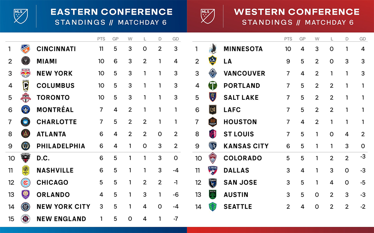 La cinquième journée de MLS, programmée en pleine fenêtre internationale, a été marquée par des surprises et la fin de dynamiques positives et négatives.