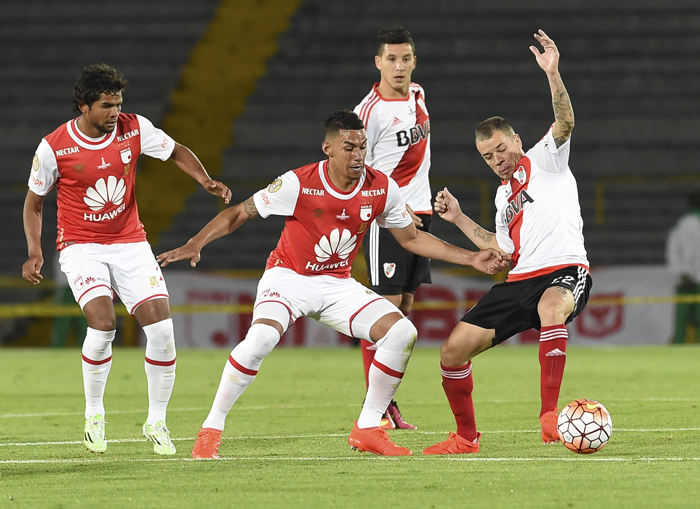 Plus d’un an après son dernier titre, River se rendait au Campín pour y défier son successeur au palmarès de la Sudamericana et de la Suruga Bank, Santa Fe. Cette finale aller de Recopa n’était pas sans intérêt pour les Millonarios. Car outre le fait d’offrir un nouveau titre continental, elle devait permettre au nouveau River de montrer que son appétit de titres n’avait pas diminué. Nouveau River car Marcelo Gallardo usait son 4-2-2-2 et lançait quelques nouveaux visages, du jeune espoir Batalla dans les buts à la révélation Mina en défense centrale et Jorge Moreira côté droit. Côté Cardenales, quelques nouveautés également puisque la prise de pouvoir de Gustavo Costas a remodelé une équipe dont seulement trois joueurs avaient été de la finale de Sudamericana de 2015.
