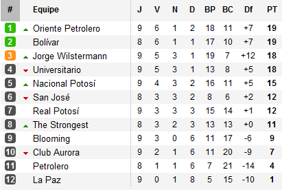 Passé leader la semaine dernière, Oriente Petrolero n’a pas su profiter de la neuvième journée pour conserver son avance. Les Albiverdes ne parviennent à faire mieux que sauver un point à domicile face au Nacional Potosí et voient ainsi leurs poursuivants se rapprocher au général.